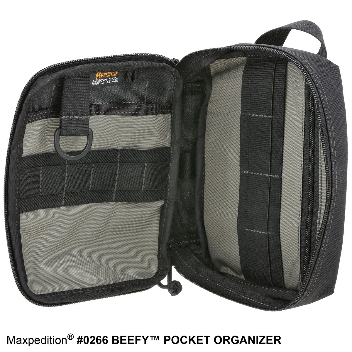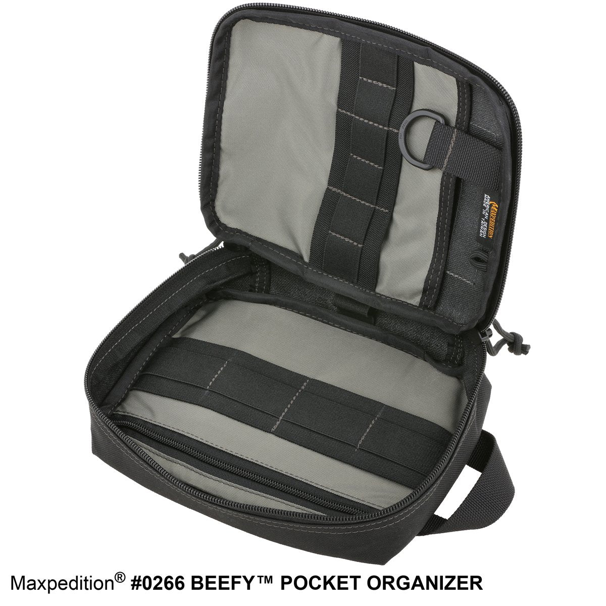 Maxpedition beefed up the Fatty™ Pocket Organizer for increased capacity. The largest of its kind with optimum interior space for standard flashlights, hand tools, large knives, 16 oz. bottles, heavy cables and other fuller-sized gear. A full clamshell opening reveals a hefty main compartment, containing 15 elastic dividers and 2 large slip & zippered pockets. This portable utility carry is perfect for big jobs and can be dropped into your Maxpedition bag or attached to its exterior PALS webbing for extended travels.