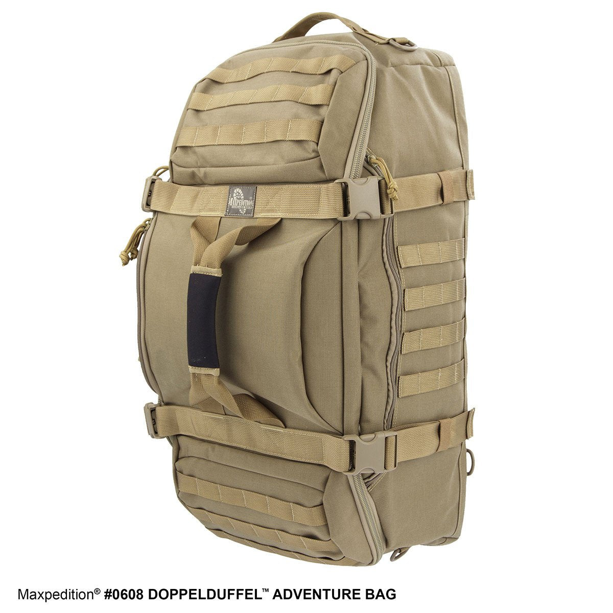 The Doppelduffel Adventure Bag is a unique travel bag that can be carried by hand, by shoulder strap (in 2 orientations), or by it's concealable ergonomic backpack straps. Multiple pockets, pouches, and compartments offer plenty of space and organization, and the main interior is equipped with 2 padded dividers for splitting the main compartment into smaller sections.