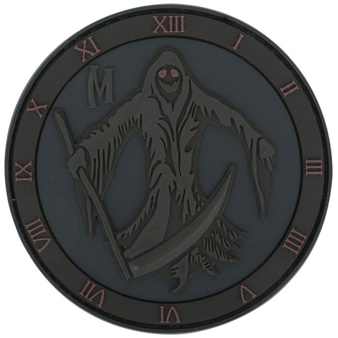 This morale patch features an extraordinary depiction of the infamous Grim Reaper in the center of clock, reminding us not to put off to tomorrow what can be done today.