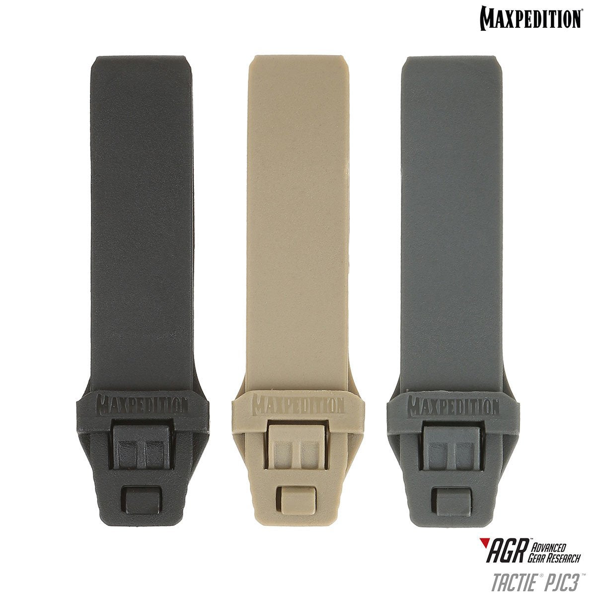 The patented TacTie Polymer Joining Clip (PJC) is a heavy duty injection molded hardware component developed by the Maxpedition design team, and it comes in 2 sizes: PJC3 and PJC5. It is used to integrate accessory pockets and pouches onto packs, vests, ATLAS™ surfaces, PALS surfaces and MOLLE equipment in an interlocking manner. The TacTie PJC is secure when properly woven but may be disengaged by hand without the aid of tools. They are backwards compatible with older Maxpedition pouches backed with webbing as well as fully MOLLE / PALS compatible.