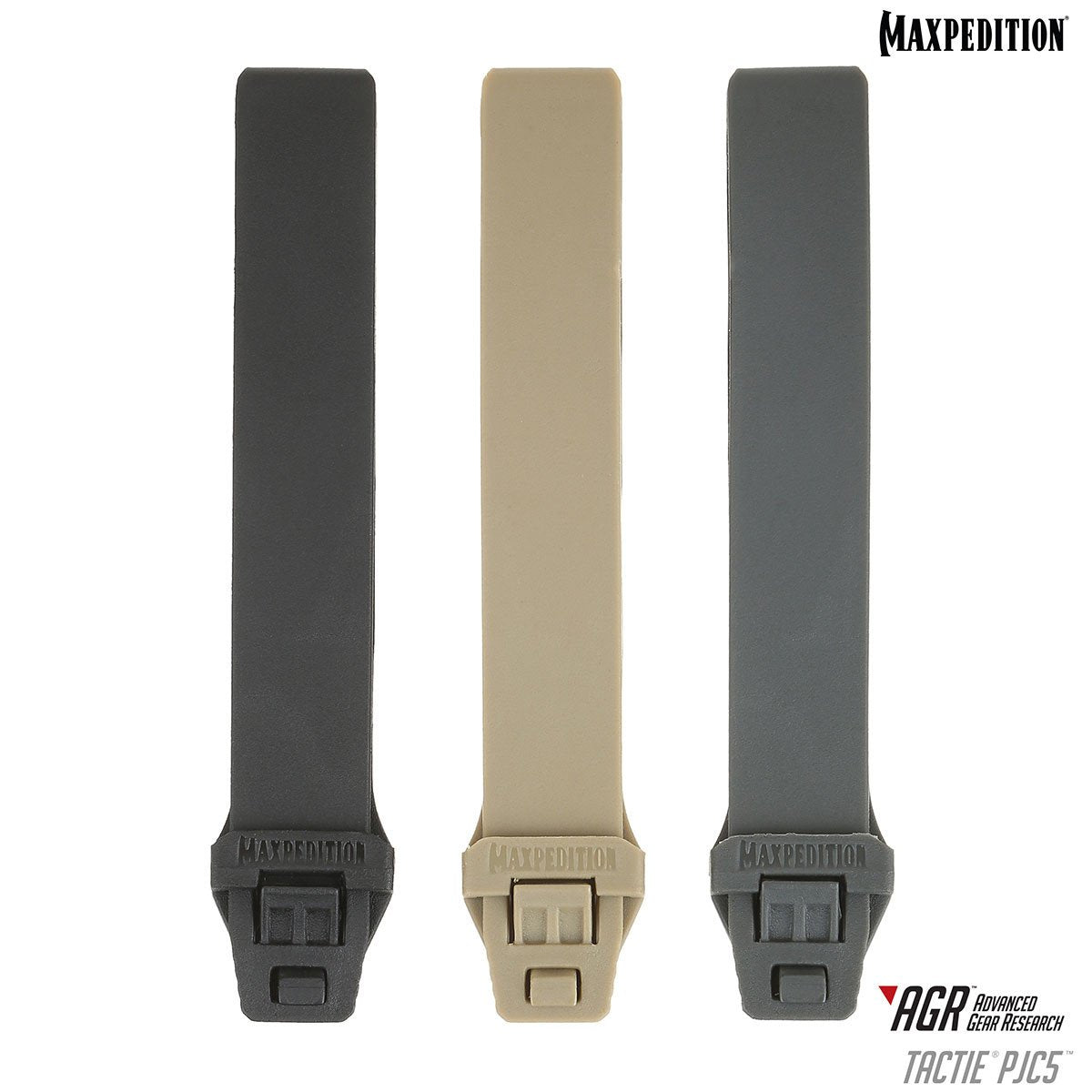 The patented TacTie Polymer Joining Clip (PJC) is a heavy duty injection molded hardware component developed by the Maxpedition design team, and it comes in 2 sizes: PJC3 and PJC5. It is used to integrate accessory pockets and pouches onto packs, vests, ATLAS™ surfaces, PALS surfaces and MOLLE equipment in an interlocking manner. The TacTie PJC is secure when properly woven but may be disengaged by hand without the aid of tools. They are backwards compatible with older Maxpedition pouches backed with webbing as well as fully MOLLE / PALS compatible.